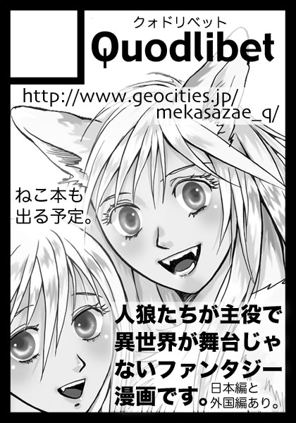 「Quodlibet(クォドリベット)」を主催。人狼や動物のまんが・イラストなどを描いています。
