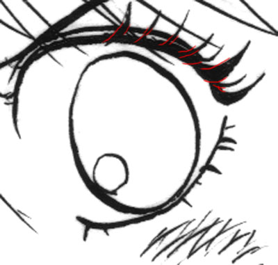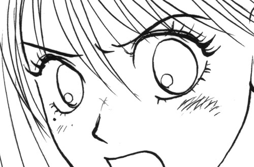 ペン入れできるが、白抜きのまつ毛や金髪(銀髪)の髪の艶線など、