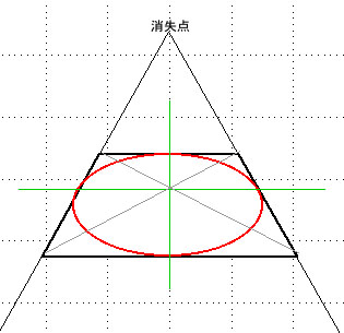 それを目安にして、枠の中に(パースをつけるつもりで)円を描いてみます。